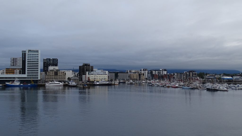 Nach einer entspannten und ruhigen Überfahrt machten wir uns weiter auf den Weg nach Bodø. Ca. 220km lagen vor uns und wir fanden unseren Stellplatz nahe dem Yachthafen mit Blick auf Litle Hjartoya der Festung Nyholmen, die wir in den Abendstunden noch besuchten.