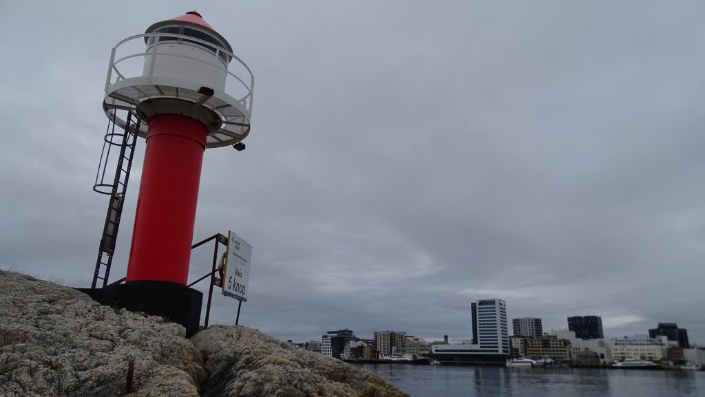 Am Fuße des Litle Hjartoya liegt Nyholmen Fyr, ein kleiner Leuchtturm. Von dort aus kann man einen Panorama Blick auf die Sykline und die Bucht von Bodø werfen.