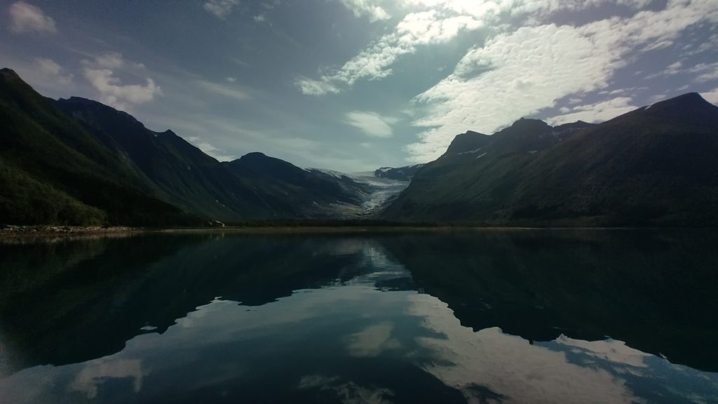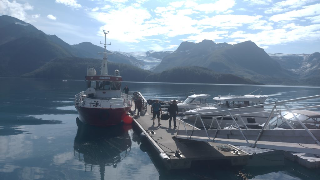 Heute sind wir lediglich mit dem Van vom Campingplatz zum Parkplatz bzw. zum Shuttle Boot Anleger gefahren, von dem wir aus unsere Wanderung zum Svartisen, besser gesagt zur Gletscherzunge Engenbreen gestartet haben.