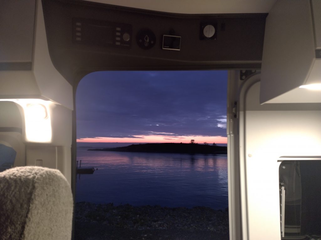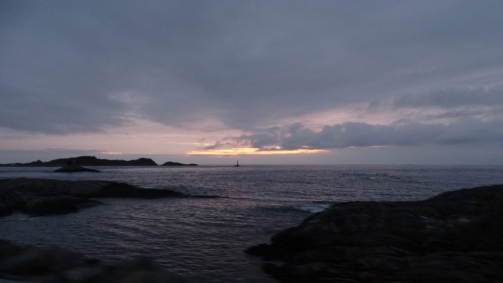 Noch ein paar Kilometer weiter erreichen wir unser Ziel. Ein sehr ruhiger Stellplatz (http://Bergsetvegen 253, 6430 Bud, Norwegen) auf einem privaten aber für Wohnmobile zur Verfügung gestellten Platz in Bud mit Blick auf den Atlantik.