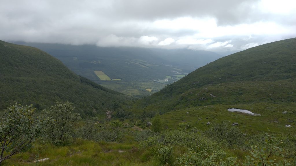 Bevor es weiter Richtung Molde geht, machten wir noch einen Abstecher rauf zur Trollkyrkja. Gut ausgerüstet mit warmen Sachen, Taschenlampen und festem Schuhwerk starteten wir unsere Wanderung. Vom Parkplatz (http://Unnamed Road, 6440, Elnesvågen, Norwegen) aus sind es gut 3,5 km, die zunächst ganz entspannt durch ebenes Gelände entlang eines Flusses verliefen. Nach gut 1 km wurde der Weg steiniger und steiler. Je höher wir auf unserem Weg kamen, desto größer wurden die Steine, die wir hinaufstiegen.