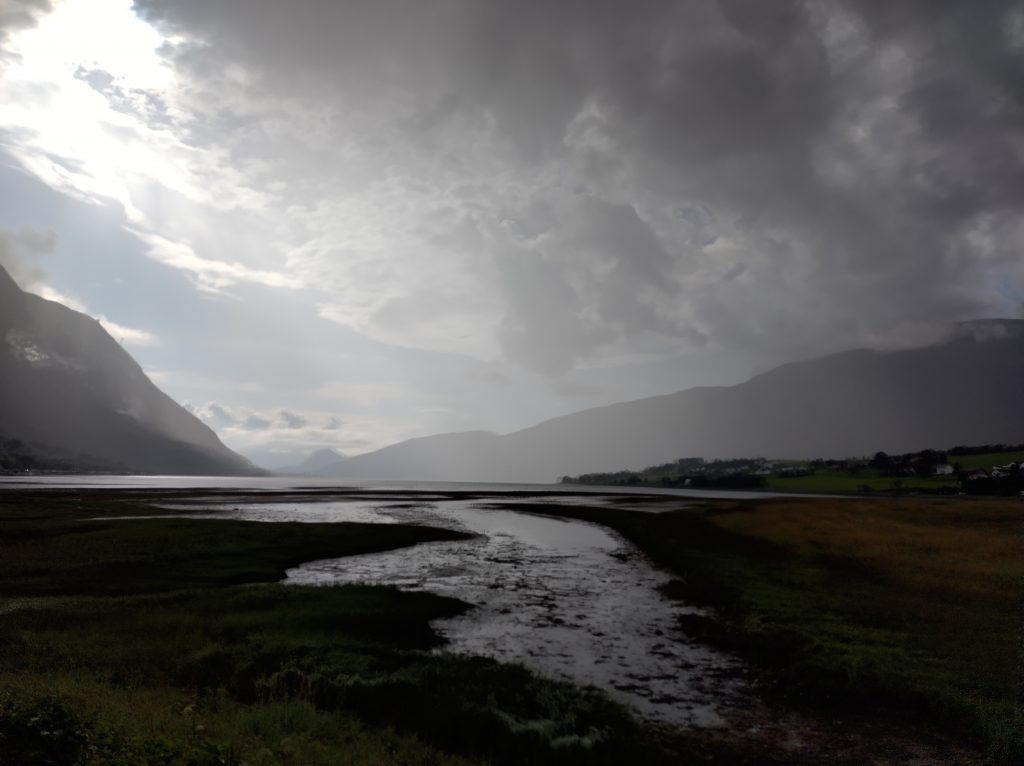 Nach unserer Wanderung ging es weiter über den Ort Molde, entlang der Fv64 weiter ins Landesinnere nach Andalsnes. Wo wir von einem wunderschönen Regenbogen empfangen wurden und uns mit einem guten Freund getroffen haben, um dann gemeinsam weiterzureisen. Die Nacht verbrachten wir in einer kleinen Parkbucht direkt am Isfjord der Nahe eines Steinbruchs.