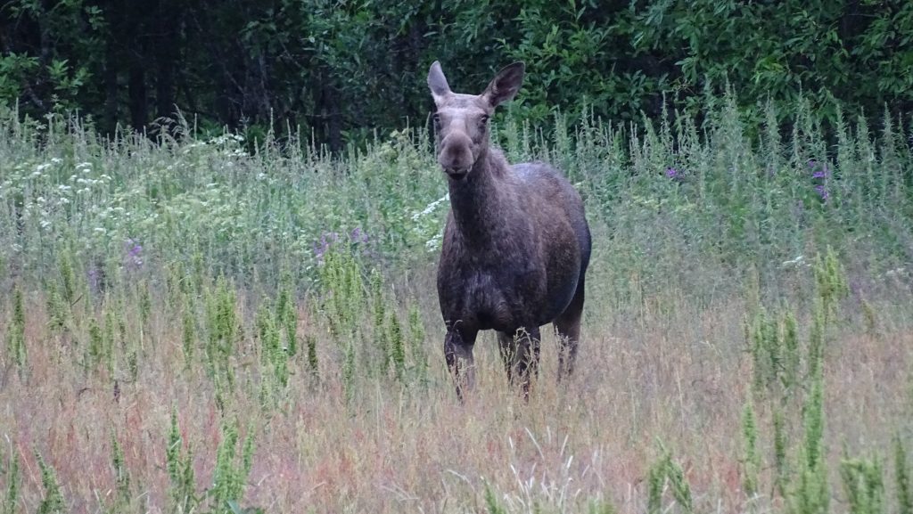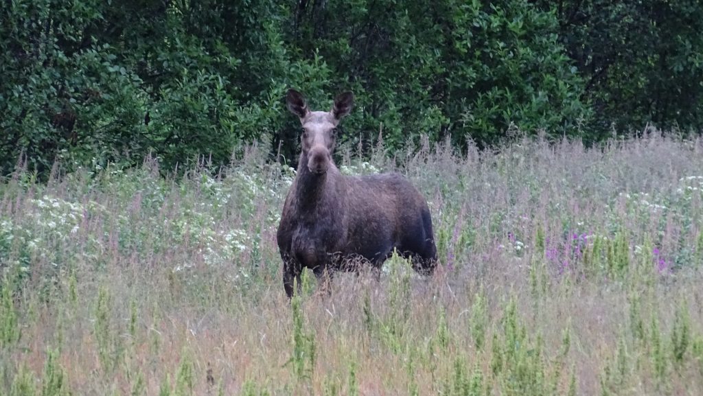 Diese letzte Strecke hat sich nochmal so richtig gelohnt, denn zu den späten Abendstunden hatten wir nochmal riesiges Glück und unseren ersten Elch oder besser gesagt unsere erste Elchin gesehen. Gegen Mitternacht kommen wir in Nordkjosbotn. Die ersten blauen Lücken lassen uns auf besseres Wetter in den nächsten Tagen hoffen.