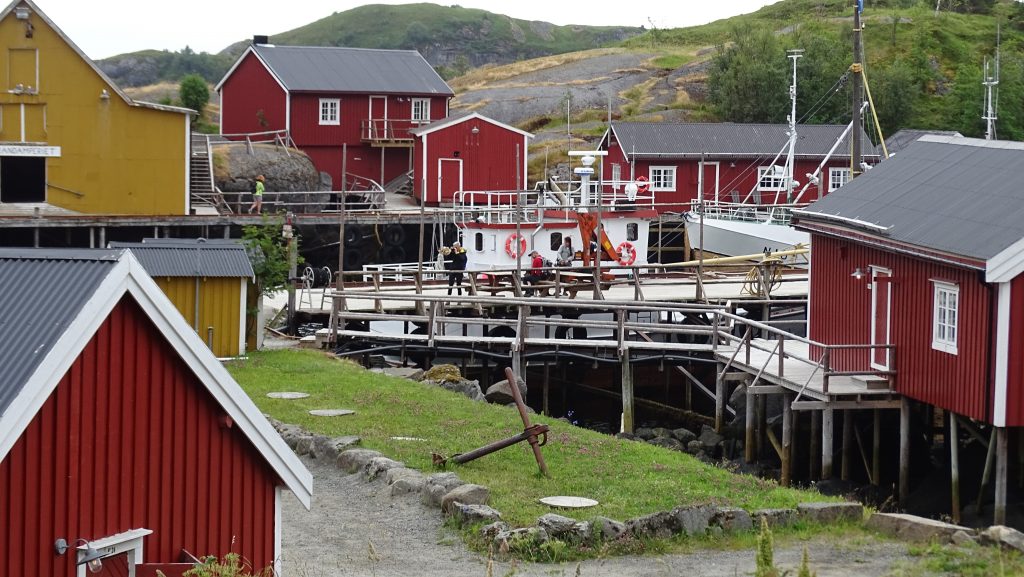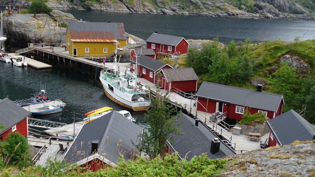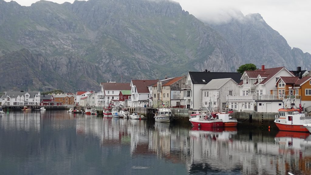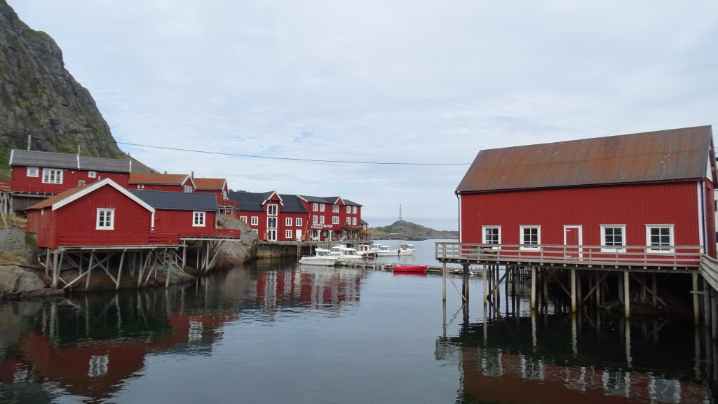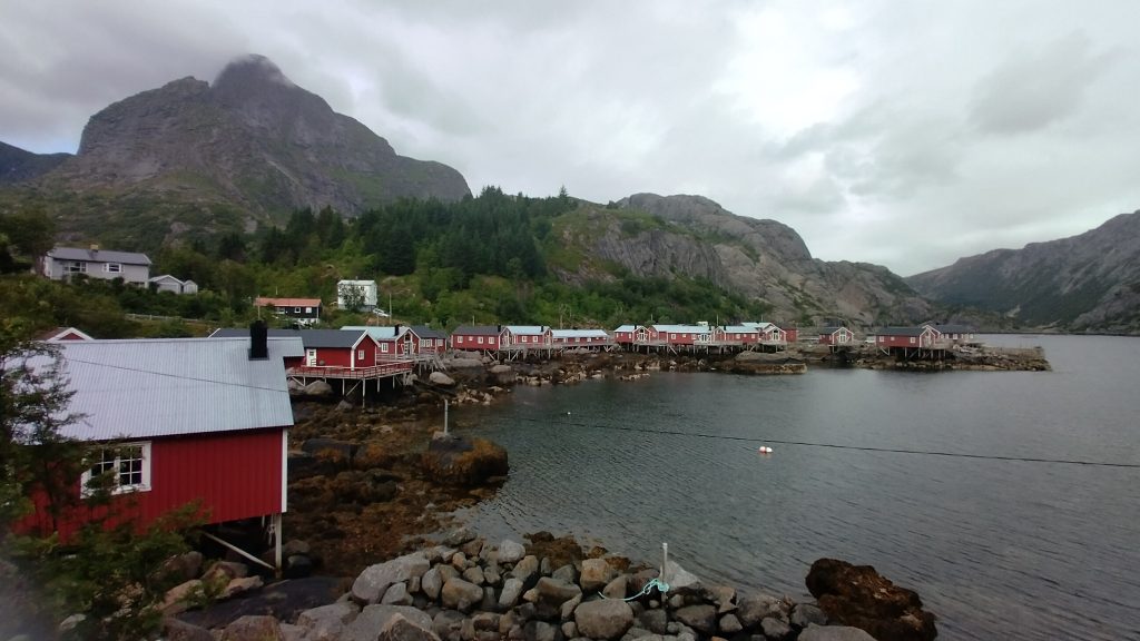 Nach nur 23 km Fahrt erreichen wir Ramberg im Nussfjord, ein wunderschönes historisches Fischerdorf und Freilichtmuseum.