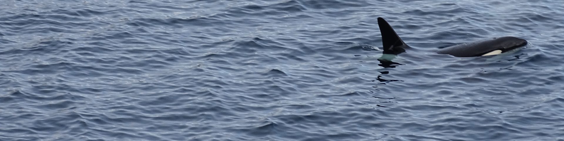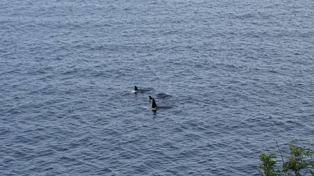 Ein paar Kilometer vor Å entdeckten wir plötzlich eine kleine Gruppe Orkas im Meer.