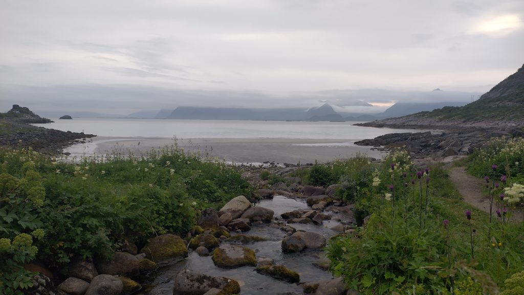 Die vielen kleinen Orte zwischen den Bergen und den Fjorden sind kleinen Highlights der Lofoten. Aber gerade gerade in diesen Orten sind im den Monaten Juni und August unwahrscheinlich viele Touristen unterwegs und die Straßen voll mit Caravans. Wir entschieden uns einfach weiter zu fahren und fuhren in der Mitternachtssonne weiter zurück Richtung Lødingen.